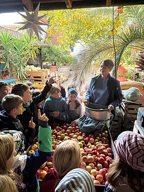 Grundschule Deidesheim zu Besuch auf dem Obsthof Reinhardt (Niederkirchen)